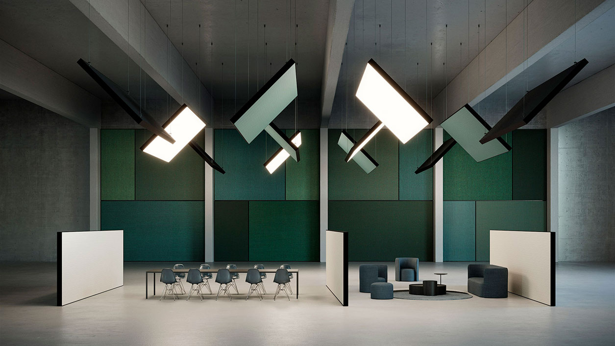 Dresswall profiles employing sound-absorption capabilities without any lighting technology exist under the name of DresswallAcoustics. As well as DresswallAcoustics can be combined with the lighting technology we developed for DresswallLights so that the light source can also act as a sound-absorption one.